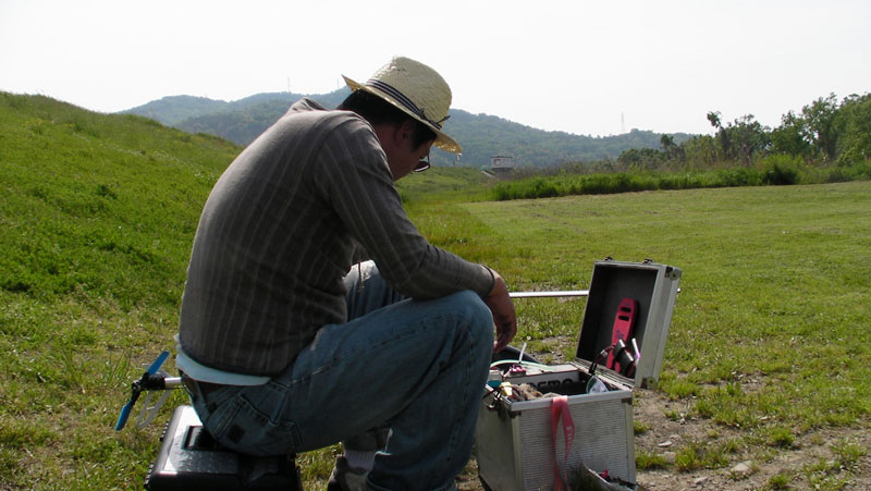 。まだ飛ばせませんので初号機のみ持って飛行場へ。