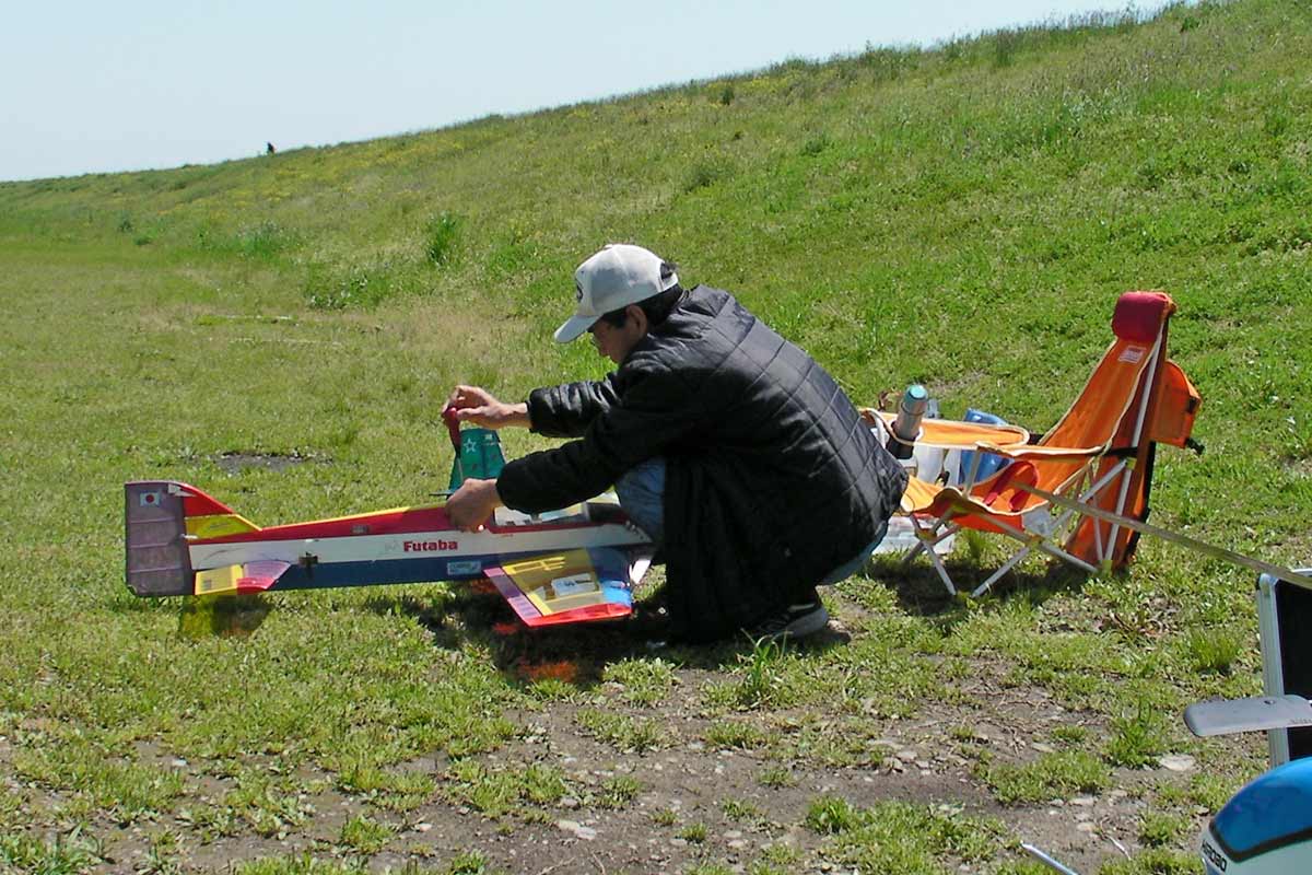 ですがフライト出来そうでしたので出発。いいお天気でしたが飛行場には誰もおらず、とりあえず初号機始動。軽く指慣らしをしているとW林さんが登場。そうこうしているうちにY2さん、K2さんが登場。本日の出動は4名でした。