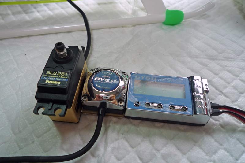GY611はコンテストジャイロと銘打っているだけあり高級感は抜群ですが、アンプ別体のため少々かさばります。GY520のようなアンプ一体型ジャイロと比べれば重くなるのは否めません。ちなみに3Dモードというのがあり、テールの止まりを犠牲にする代わりにピルエットスピードがラダー操作に完全追従するようになります。