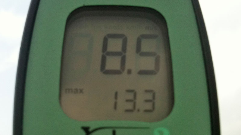 それにしても飛行場はすごい風です。ときどき弱まって3m/sec程度になることがあるものの、強い時には10m/sec以上の風が