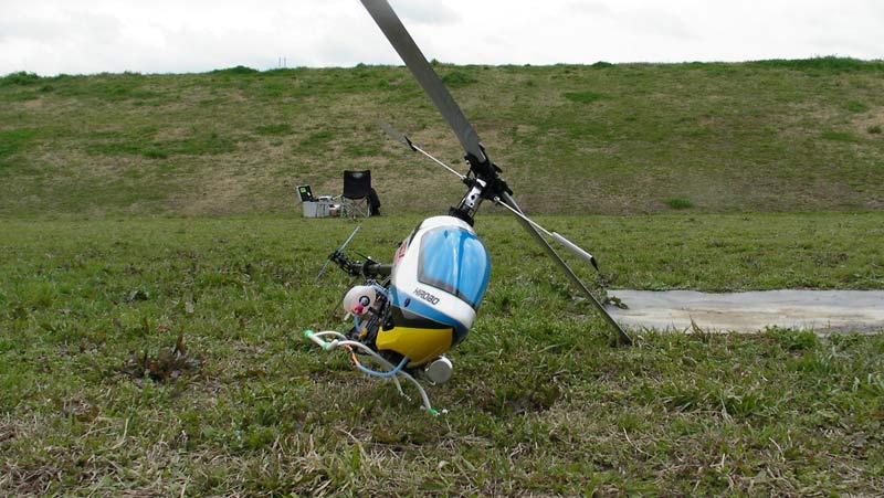 との予報。飛行場は結構寒く、風も3m/sec前後で肌寒い感じです。先日来のキャビンがようやく完成したので初号機に取り付け飛行させました。
