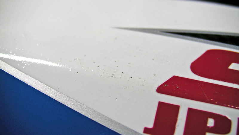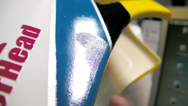 】という間に地面に落ちてしまいました。半乾きの状態で落ちたためウレタン塗料に細かな砂がのめり込んでしまう何とも情けない姿に・・・