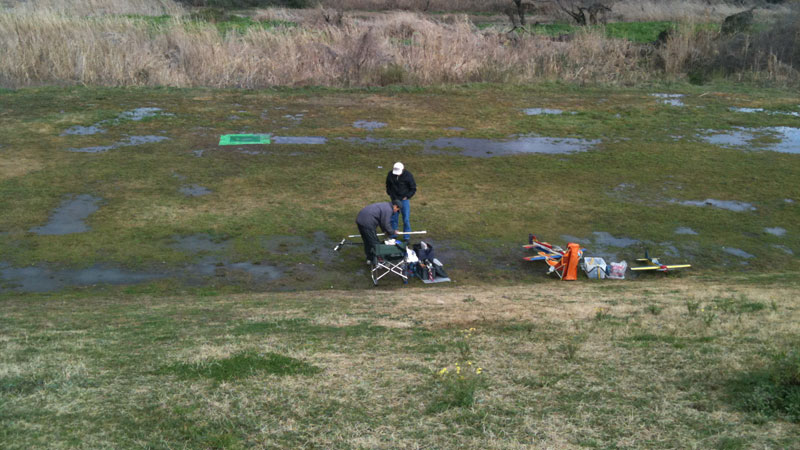Y2さんは水たまりを避け電動機のフライト。着陸時はかなり気を使っていたようでしたが、それでも少し水たまりへ入っていってしまったりしました。メカなどには問題がなさそうでしたので良かったです。