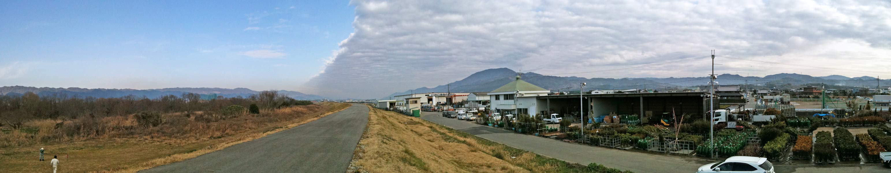 天空を二分する不思議な雲。左下にはゴルファーも・・・(^^;;