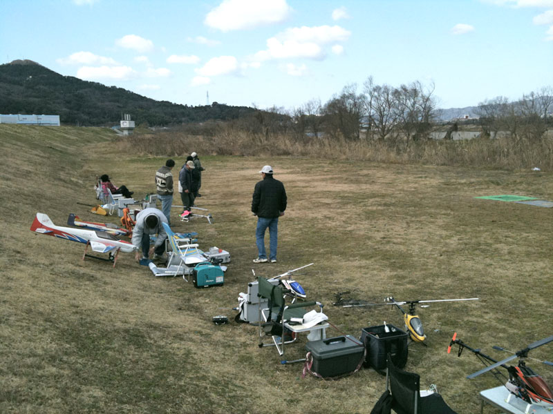 昨日の土曜日とは違い、風も穏やかでいい感じのお天気。飛行場へ到着すると数人がすでにフライトさせています。昨日調子の悪かった初号機を飛ばすことに。あ、もちろんエルロンレバーは組み直しました(笑)