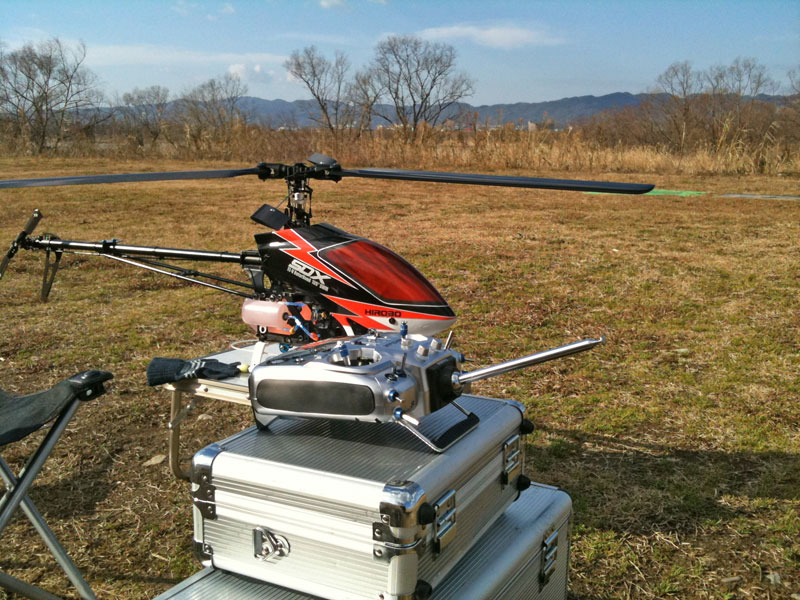 。風は少し冷たく、常時2〜3m/secはありそうです。今日はSDX初号機・弐号機を各1タンクずつ。最近、余り飛ばせていないので結構疲れます。ホバリングですらかなりの疲労感を覚えてしまいます。両機ともいつものように軽い上空〜なんちゃって3Dまでやってみましたが、何とも中途半端な演技に終始してしまいました