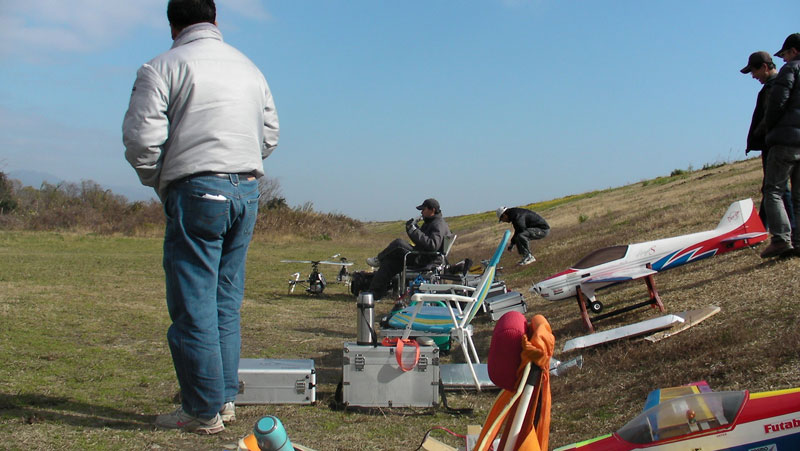 先日来調整を重ねてきた初号機ですが、今日はテストフライト。宿直明けで頑張って飛行場へ行ってきました。飛行場にはすでに数人。風は2~3m/sec程度で結構冷たく感じます。お昼前には風もやみ暖かな感じの天候となりました。