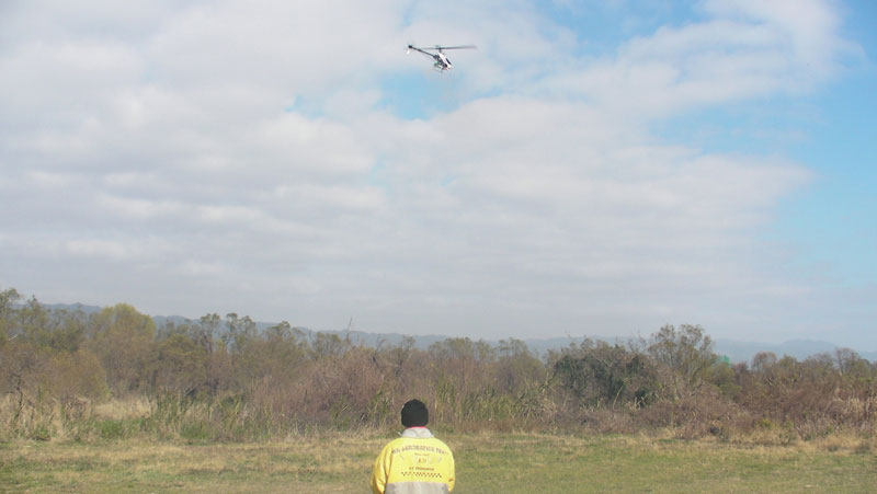 さて、初号機に燃料を入れいつもどおりに始動。そして離陸させます。あれ?テールがおかしいなぁ…。でもラダーは効いている感じだし…と思ってエンコンを上げていった途端テール制御が効かず急いで着陸させたものの横転。離陸後10秒も持たずに墜落しました。アイレベルでの墜落ですので地球と喧嘩しても勝てるはずもなく、DYローターはバラバラ、コントロールアーム破損、テールパイプ破損、ヨーク破損、その他マストも逝っている