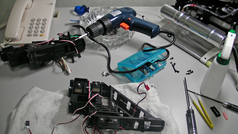 先日来挙動のおかしかった初号機ですが、重い腰を上げてサーボベッドを補修しました。サーボを降ろして、載せ替えて・・・結構めんどくさいのですが、サーボベッドだけ外して補修できるのは