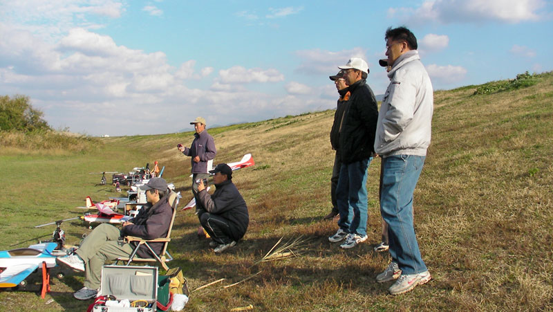 今日は土曜日。いつもなら昼遅めにしか行けませんが、仕事が早めに切り上げられたので飛行場へ。土曜日というのにかなりの人数が。飛行機組の方が多く参加されているようです。風は微風、気温はまずまずでした。