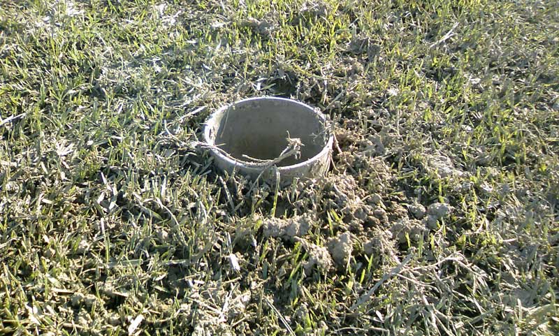 飛行場は今日もまだぬかるみが多く、コンディションは良くありません。国土交通省の地質調査でしょうか、一部土をくりぬいた部分を発見。もしかするとパッティング練習用のカップ?・・・なわけないですよね(笑)