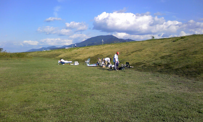台風一過、連日のように飛行場に通っているわけですが今日は所用のため仕事帰りに偵察のみ立ち寄りました。いつもなら皆さんお帰りになっている頃なのですが、なぜだか今日は数人が。JYALAさん、K2さん、I元さん、そしてT口さんです。