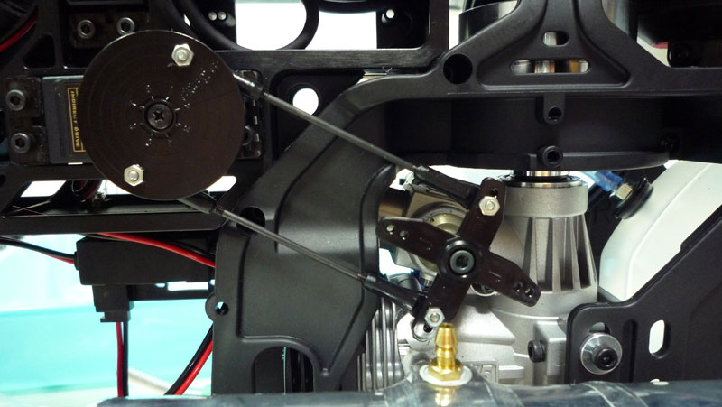 エンジンはOS55HZなので、スロットルは取説どおりに両引き仕様に。サーボがS3001なのでピッチなどに使用したS9255に比べると微妙に遅れがちなのは仕方ないか…。まぁ、機会があればサーボ変更も考えます(^ω^)