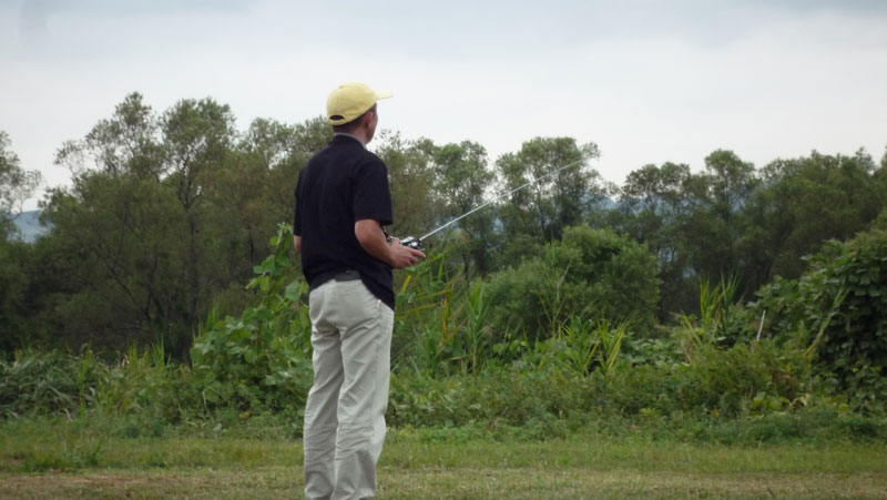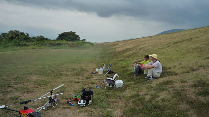 。帰り足で飛行場へ。K2さん、Uさん、Y2本さんが。 K2さんは朝からお見えになっていたようですが、送信機のバッテリが心もとないとの事で撤収準備中でした。曇り空の下、まったり…