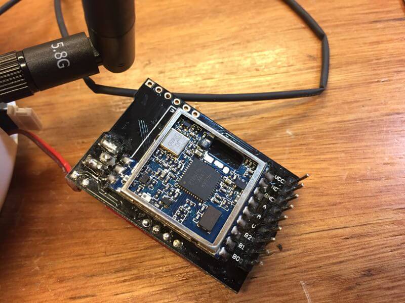 で、RX5808の話。Fatshark用の5.8GHzモジュールですが、音声乗らないなぁ…と思っていたらなんと共振器がオミットされていることが判明。他のモジュールを分解したらついているので、このRX5808はそのままでは音声を扱えないようです。部品発注したので、とどいたらとりあえず付けてみます(^^;;共振器がオミットされているRX5808(左) 右はFatashark純正モジュール。