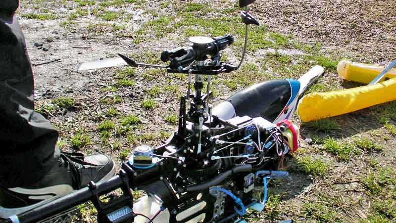 でした。飛行場には2番のり。すでにYさんはT-REX700を飛ばしている最中でした。