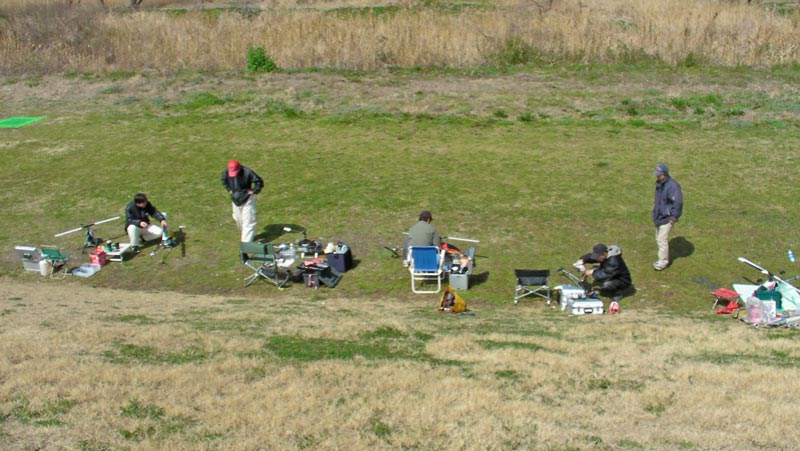 まずまずのお天気の中、仕事途中に立ち寄りました。飛行場にはI戸さん、Yさん、I元さん、Kさん、K2さんが。車が数台停まっているので普段なら堤防越しにかなりの音が聞こえるはずですが、イヤに静かです。はは~ん、誰か墜として捜索中かな?と思っていたのですが、結果はご覧の有様。