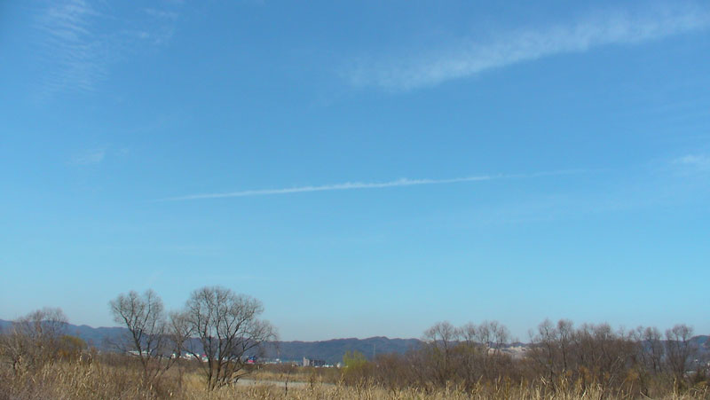 ので歯科受診と午前中はこれで時間がつぶれました。いつものように正午過ぎに出動。天気予報では下り坂の天気でしたが、まだ何とか晴れています。しかし飛行機雲が出ているところを見ると、予報は当たりそうです・・・。