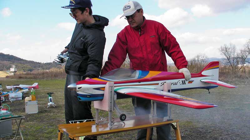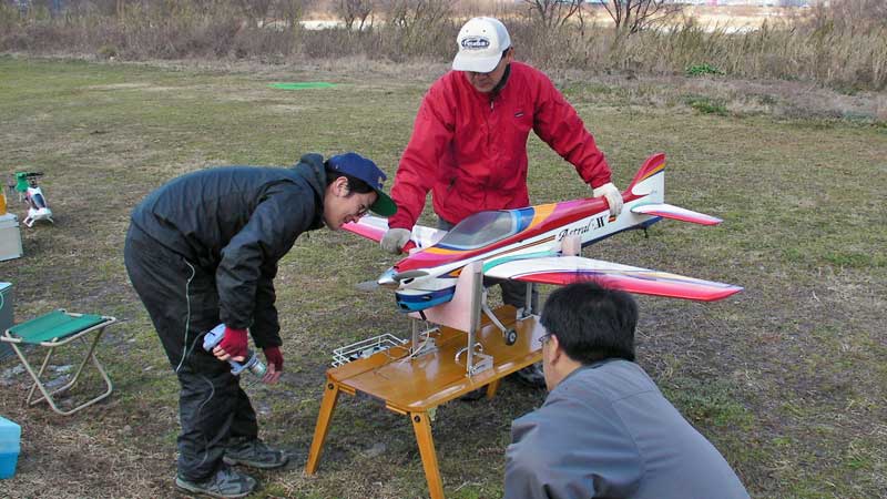 ちょうどGP-Astralを飛ばそうとされていたようですが、なかなかエンジンがかかりません。キャブレターから燃料を入れてみたり、プラグを変えたりすることでようやく始動。この始動の煩わしさがEPにはないので昨今はEP全盛ですが、やはりGP機は迫力があります。いつものように非常に丁寧なフライトをされていました。垂直上昇やその後のストール、ロール・・・。Get the Flash Player to see this player.