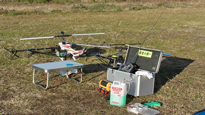 お天気はまずまずだったこの日はやや遅めの終業だったので、15時30分少し前に飛行場に到着。参号機はまだ返ってきていませんので、壱号機と弐号機を飛ばすことにしました。っていうか、12日以降車に積みっぱなしだっただけですが(笑)