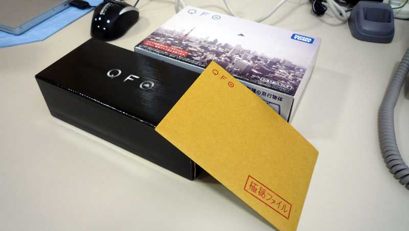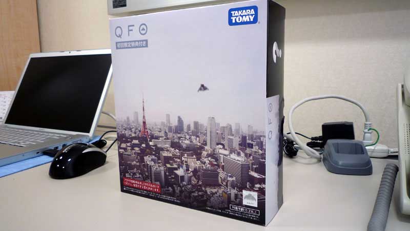 今回は【初回限定版】らしく、箱も少し大きめです。開けてみるとQFOが入っている箱と初回限定版のおまけの箱が。おまけの箱は真っ黒で『?』がプリントされています。QFOの箱を開けてみると充電器兼用のIRコントローラーとQFO本体が。また、取扱説明書は極秘ファイルといった形で納められており、なかなか凝った仕掛けです。PR