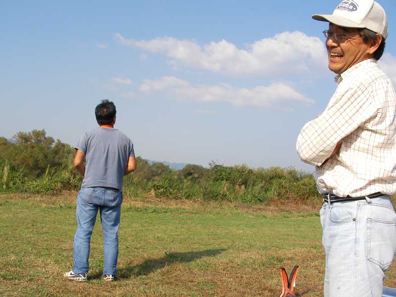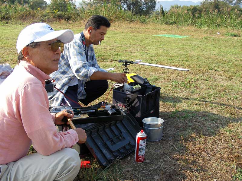 ・・・。空モノをするにはもってこいのお天気です。案の定、いつものメンツが飛ばしていました。ヘリではI戸さん、Kさん。飛行機組はYさんとTさん。合計4人で飛ばしていました。