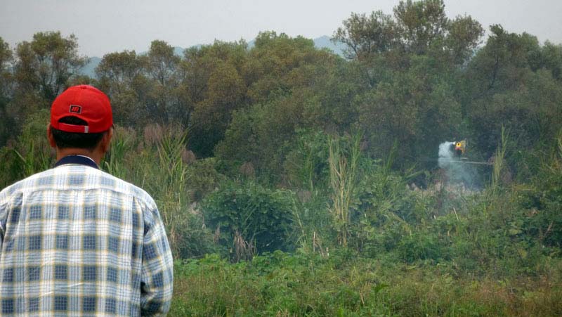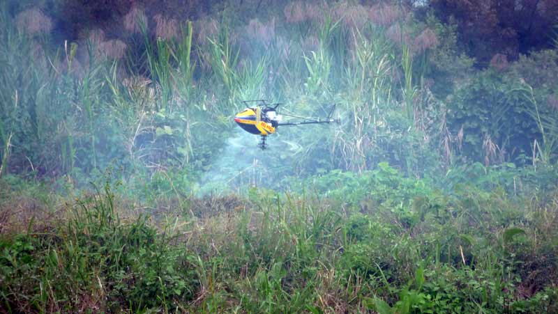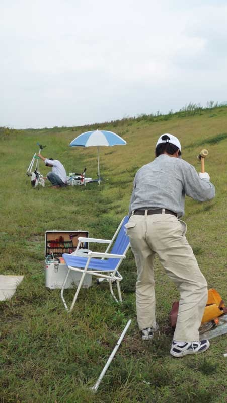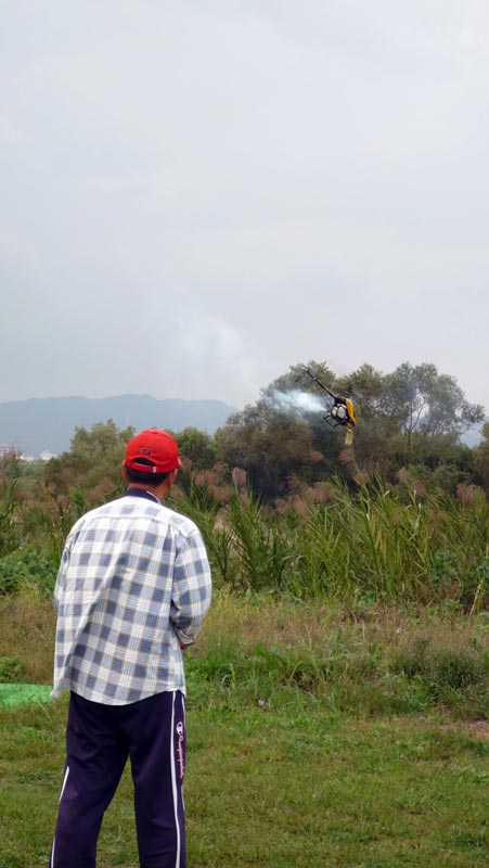 飛行場にはいつもの3人、I戸さん・Kさん・K2さんが。I戸さん以外はすでに帰り支度でしたので飛ばしていたのはI戸さんだけでした。飛ばしているのはT-REX700N、最近の90です。いつものように3Dを延々と練習されています。機体自体が大きいので、傍目でも見てもかなりの迫力があります。また、機体全体がスマートな形ぶりだからでしょうか、いかにも3Dという感じがします。 時間的におよそ10分ほどでしょうか。最後は背面で地面ぎりぎりまで寄せてみたり、ブレードで草苅をしてみたり・・・(笑) 特に大きな損傷もなく無事演技を終えられました。プロポはいつの間にかFF10に変わってました。KさんにT-REXと一緒にプロポも売り払ったらしいです。2.4GHzのF・A・S・S・Tなのでアンテナも短くなかなかいい感じです。 飛行場にお邪魔したのは約30分ほどでしたが、なかなか有意義でした。何枚か写真をアップしてますのでご堪能下さい