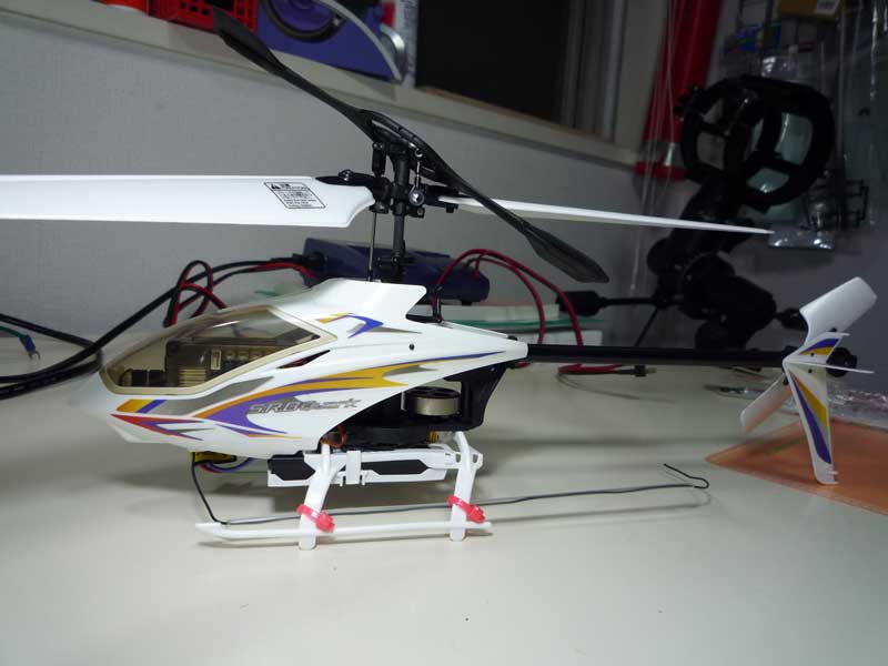 そんな中、HIROBOから小型電動ヘリS.R.B Quarkが出ていることを知りました。同じHIROBOの電動ヘリ、レプトンは室内では無理ですがS.R.B.はX.R.Bと同様インドア設計のヘリです。大きく違うのはシングルローターヘリだということ。見た目もかっこよく、また微風なら外でも飛ばせるというのがポイント高いです。お値段はそこそこしますが、リハビリをかねて一台購入することにしました。