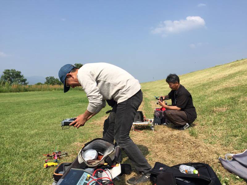 午後遅めだったのでK2さんとJYALAさんが結託して遊んでいる最中でした(笑) 220と210を飛ばしましたが、210はFPV中にラダーを上手く効かせられず、青空向いたままお尻から墜落。機体は発見できたんですが、自作マウントのMobiusが行方不明となりました…orz 接着剤で結構しっかり取り付けたつもりなんですが、やはり無理があったようです。今後改善予定。皆さんひたすら飛ばします。