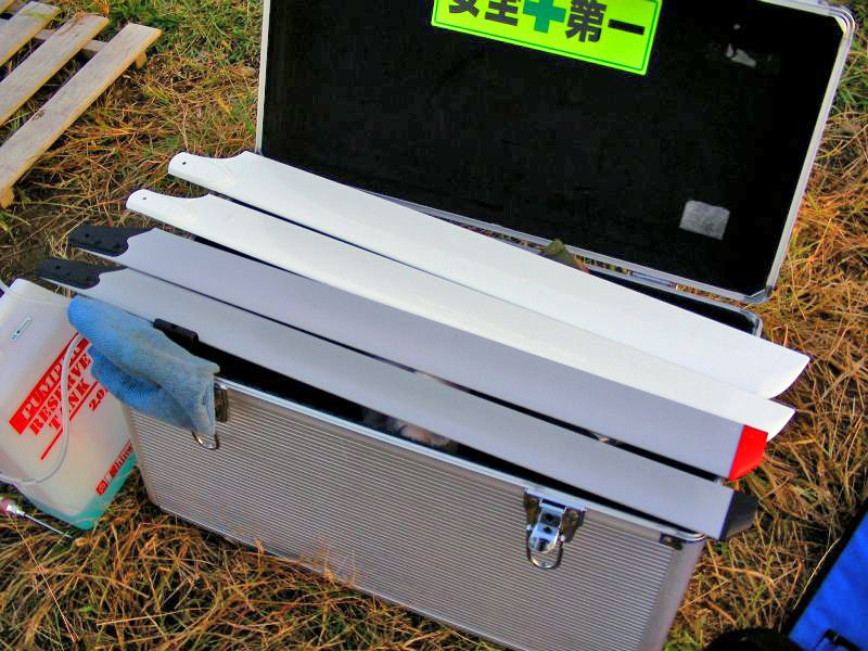 風はほとんど無く無風、ただし西側へ機体を遣ってしまうと機体姿勢が確認しづらいです。主に東側で飛ばしてみることに。今日はDYローターとK&Sローターを使ってみることにしました。まずはK&Sの樹脂ローターから。スカディーに取り付けようとしたところグリップ厚が微妙にあわず、苦労しました。スカディーは標準だと12mmのグリップですが、このローターは取り付け部がわずかに厚い感じです。精度は値段相応と思いました。ただ、ホバリングや通常上空だと意外にも普通に飛びます。ローター先端部に柔らかい樹脂チップが取り付けられているのですが、このためか少し風切り音が今までのローターと違う印象です。キーンというか、なんというか・・・。別に悪い音ではなさそうです。まぁ、ホバリングや調整程度になら十分使えるローターだと思いました。一応緊急時の予備ローターとして置いておくことにしました。