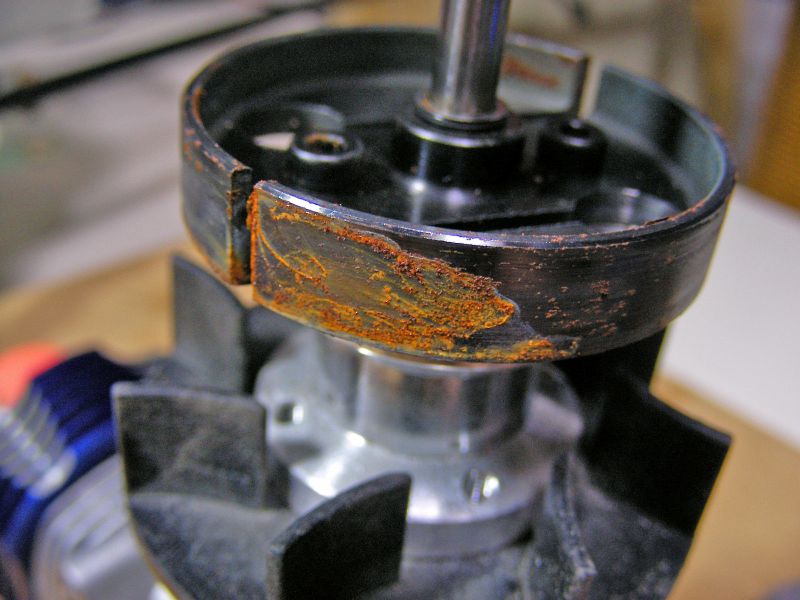 サビの程度は各所によってまちまちなのでとりあえずほぼ全部バラシの状態に。メインマスト回りのベアリングやテール部分、エンジンなどとりあえず降ろします。まずエンジン。ケースはアルミ製なので錆はないのですが、梨地の部分は一部がうっすらと腐食しているような感じです。サビ取り剤などで処理するとほぼ元通りの状態になりました。ヘッド部分を外してみると、シリンダー内は特に錆も認めません。オイル入りの燃料が充満していたせいか、全く普通といった感じです。ただ、プラグはもう使えなさそうな印象です。キャブレターも問題なく、キャブレターローターもスムーズに動きます。どうやら、燃料まみれになっていた分、腐食は最小限にとどめられたようです。ストックオイルや怪しげなIXLオイルの効果もあったのかもしれません(笑)ただし、クラッチは材質上結構錆びてます。サビ取り研磨剤を塗りながら歯ブラシでこすると、元通りになりました(^^)/PR