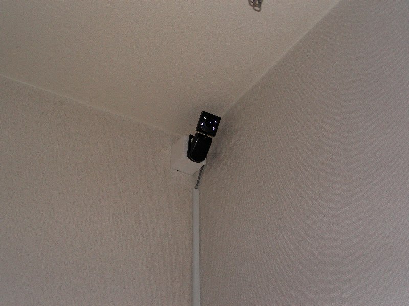 USBケーブルがだらだらと見えてしまうのがかっこよくないので100均で購入した配線カバーなどを用いて見た目をすっきりさせました。カメラは壁に貼り付けているのですが、直接貼り付けると角度調整が難しいので発泡スチロール製のブロックを基台にしています。