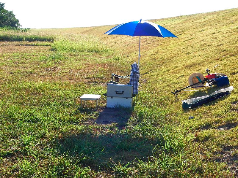 先日15日、僕は通常のお休みだったのですがたまたまお盆休みと重なったため誰か来ていることを期待しながら飛行場へ。暑さは十分予測できたので、7時前には飛行場に着くように家を出ました。案の定、この早さだと誰もいません。ひとりで黙々と準備をしつつOSスカディーから飛ばし始めます。しかし太陽はまだ低めで、東側へ機体を遣るとかなり見にくくなってしまうので、主に西側方向で練習してました。