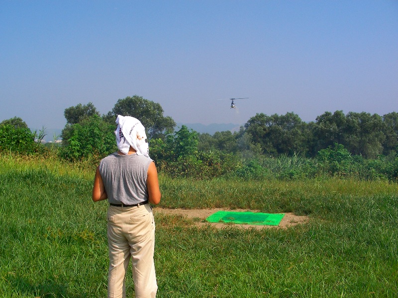 先日の日曜日、朝からかなり蒸し暑く感じた日でしたがそそくさと飛行場へ直行。すでにYさんが飛ばされており、ほぼ同時にI戸さんもお見えになってました。先日HOLDに失敗したOSスカディーは修理中にスピンドルへ咬ませるカラーを無くしてしまったことが判明、修理完了できなかったためYSスカディーのみの出動です。雲は少しあるものの、日差しはかなりきつめです。紫外線指数は7程度、ビーチパラソルの下で1程度でした。この日は帽子を忘れてしまったのでタオルを帽子代わりに使いましたが、やはり帽子は必須アイテムですね。