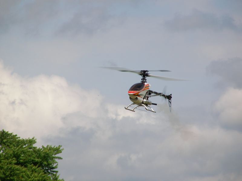 プラグも新品に交換、無事にエンジンも掛かり何度か調子を見るために静演技系をされちました。いつもは離陸直後から背面に入られるI戸さんが、長時間ホバリングをしているのを初めて見ました(笑)PR