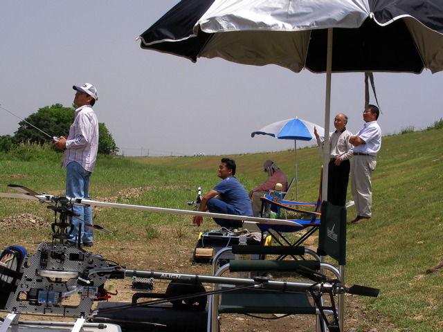 飛行機のY氏はテトラ製のGP機を持ってきていました。以前にも見たことがあったのですが、先日墜落したEP機出現以降、久し振りに見る機体です。早速飛ばしていましたが、GPならではのパワフルさなのか、少々の風でも特に問題なく離発着できていました。一部動画にしています。