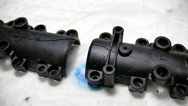 自宅に帰って早速修理開始。テールケースはご覧の通りクラックが入っています。こんな壊れ方は見たことないです