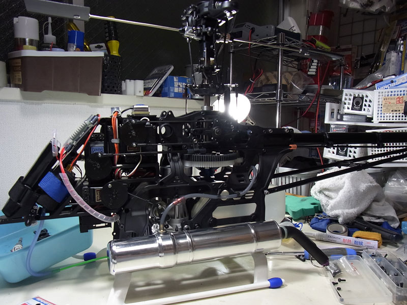 。当初はメインフレームなどの換装予定はなかったのですが、結局メカマウントやメインフレームまですべて新品に換装。マストやセンターハブまで交換したので結構大きな修繕となりました