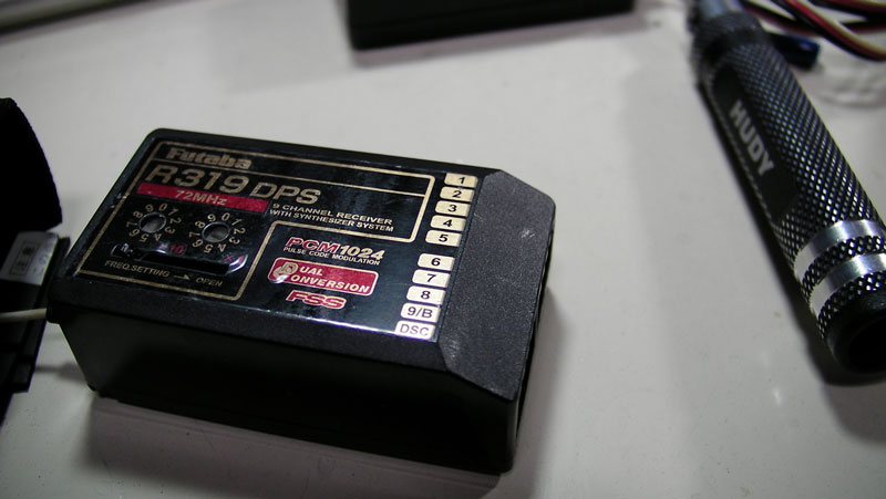 。初号機の受信機は9chのR319DPSなのですが、機体捜索ビーコン用に1ch割いてしまっているため、GV-1から2系統分の余裕がありません。回転数をGV-1本体で設定すれば1系統でも足りるのですが、やはりここは送信機側で設定したいところ。悩んだ末に、弐号機に積んでいた14chのR5114DPSと交換することにしました。めんどくさいですが仕方ありません。なんだかんだで受信機を交換し送信機からOn/Off、および回転数の設定ができるようになりました