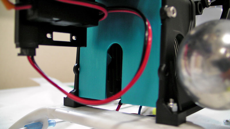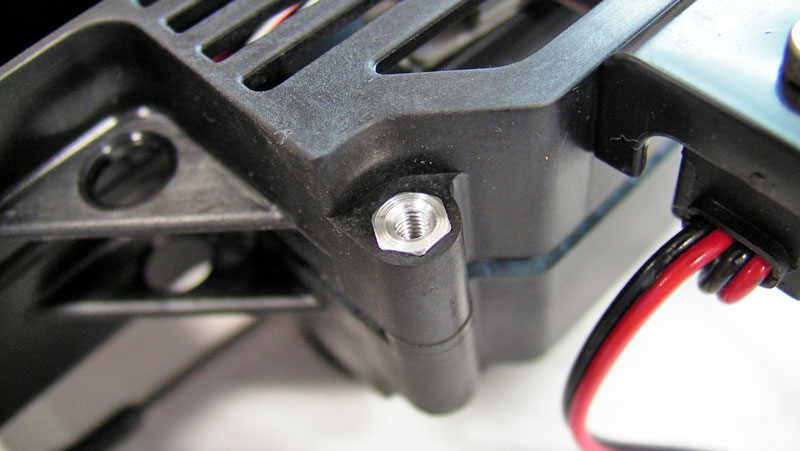 されるかも・・・(爆)さて本題。SDXのサーボユニット(サーボマウント)には3本のクロスメンバーが付属しておりマウントにはめ込んだ上でネジ留めするようになっています が、フライトし出すとこの部分から強烈な【黒い油】が染み出してきます。排気などにフレームが細かく削れたものが混じっているのですが、S-ROOM管理人様から【取り付け前にエポキシでクロスメンバーを接着しておくといいですよ】とのメール