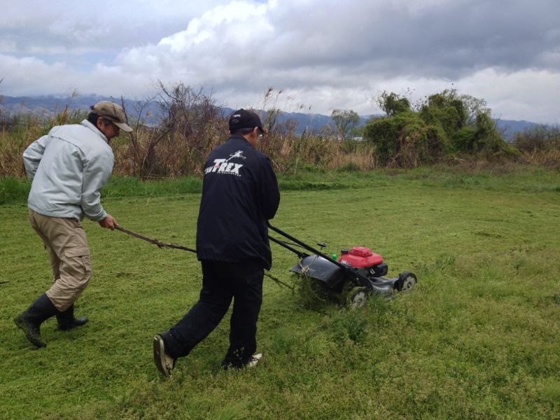 修理の合間の草刈り。雨がひどくてずぶ濡れになりました(^^;;