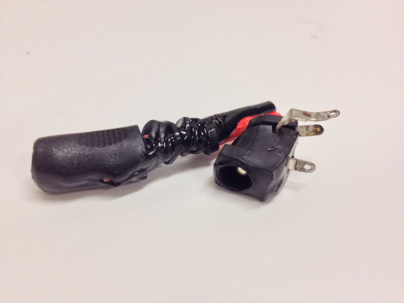 王様の充電器のDCコネクタ部分。4S 3700mAh 1C充電で溶けてしまいました。