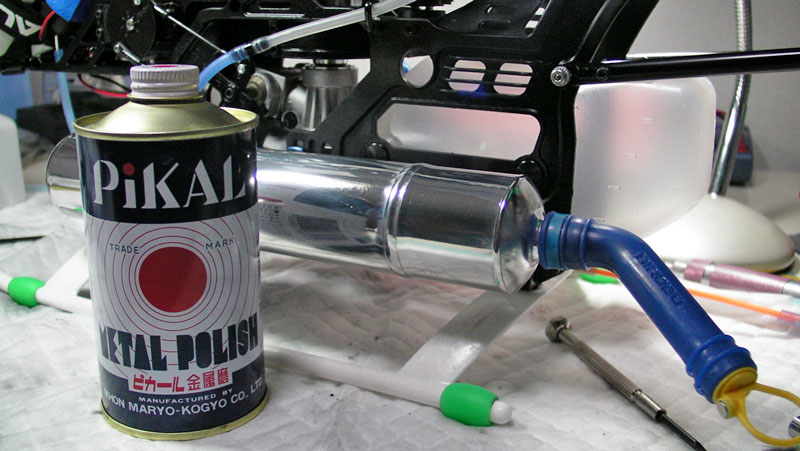 しました…orzまた、ハットリ56NS-3Dと排気ポート部の密着性を上げるため接合面を油砥ぎしておきました。おまけに56NS-3Dは稀代の金属磨き【ピカール】で丁寧に磨き上げました。ウェス一枚を捨てる覚悟で頑張ったところ結構鏡面っぽくなってきました。この間踏んづけてしまったのでキレイになり満足です。やっぱりハットリマフラーは光って
